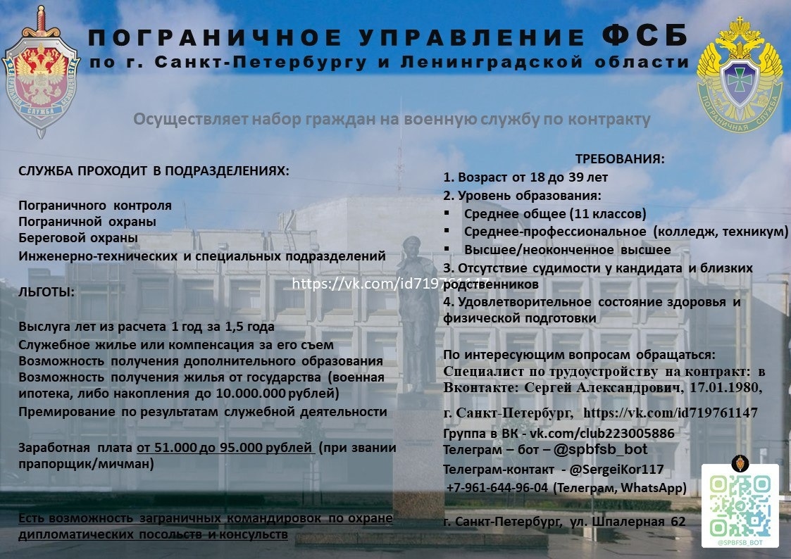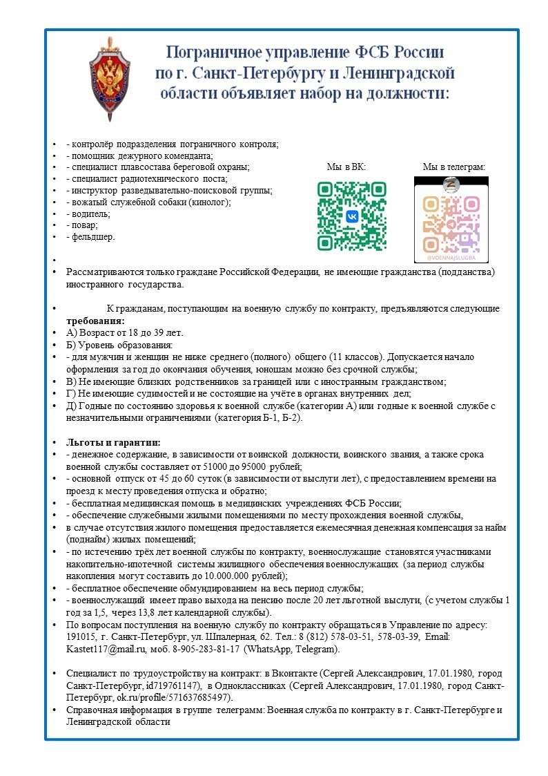 🔹 Цель встречи: Информирование о прохождении военной службы по контракту в подразделениях Пограничного Управления ФСБ России по Санкт-Петербургу и Ленинградской области.