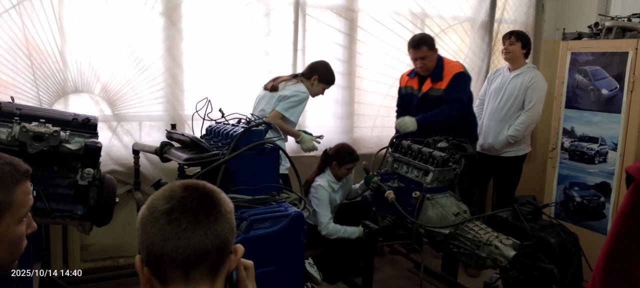 14 октября 2025 г. в ГБПОУ «Фроловский промышленно-экономический техникум» прошли профессиональные пробы – это профессиональное испытание для школьников, моделирующее элементы конкретного вида профессиональной деятельности. В проекте приняли участие школьники 9-го класса МКОУ ОШ № 4. Ребята испытали свои силы и «примерили» на себя профессию «Механика и ремонтника автотранспортных средств». Наставник Фроловского промышленно-экономического техникума, Копченко Андрей Викторович, познакомил участников с основной информацией о профессиональной области, под его руководством школьники выполняли заданную рабочую операцию, получали оценки результата своей работы и рекомендации по развитию навыков. Такой подход ориентирован на расширение границ понимания профессиональных функций и приобретение учащимися специфического опыта профессиональной деятельности. Одной из основных особенностей данного процесса является приобретение познавательного эффекта, в то время как формирование профессиональных знаний, умений и навыков играет вспомогательную роль и служит средством диагностики индивидуальных качеств, основой для познания сфер профессиональной деятельности.
